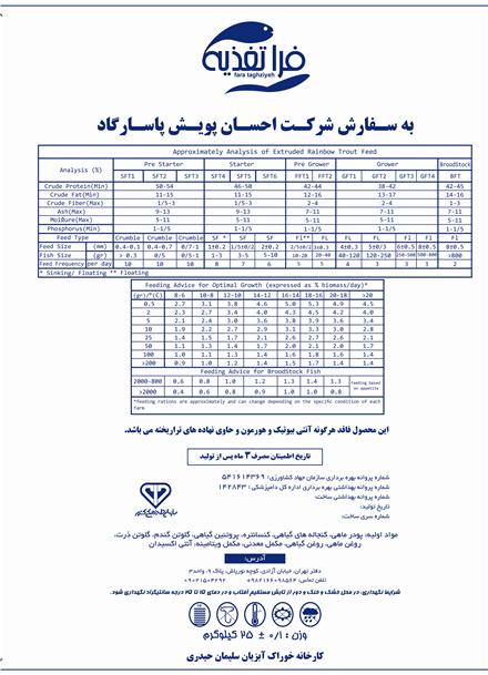 لیست قیمت خوراک ماهی قزل آلا فراتغذیه وسام